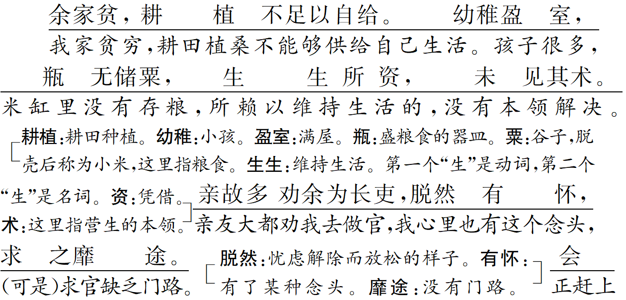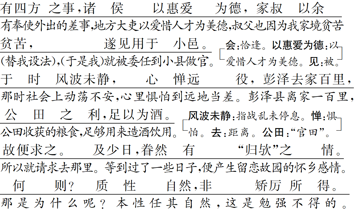 作者以极其坦诚的态度说明自己之所以就任彭泽令,是为生活所迫。