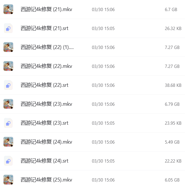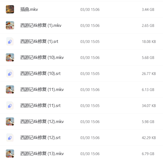 1.4K西游记数码修复完美版 包含大量绝版片段和音乐等,约160G。